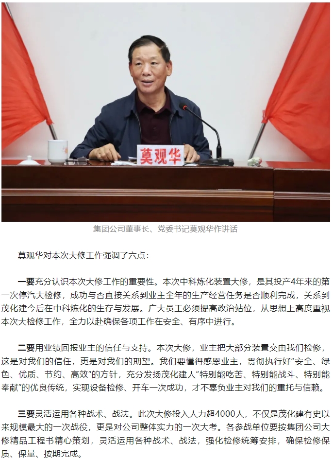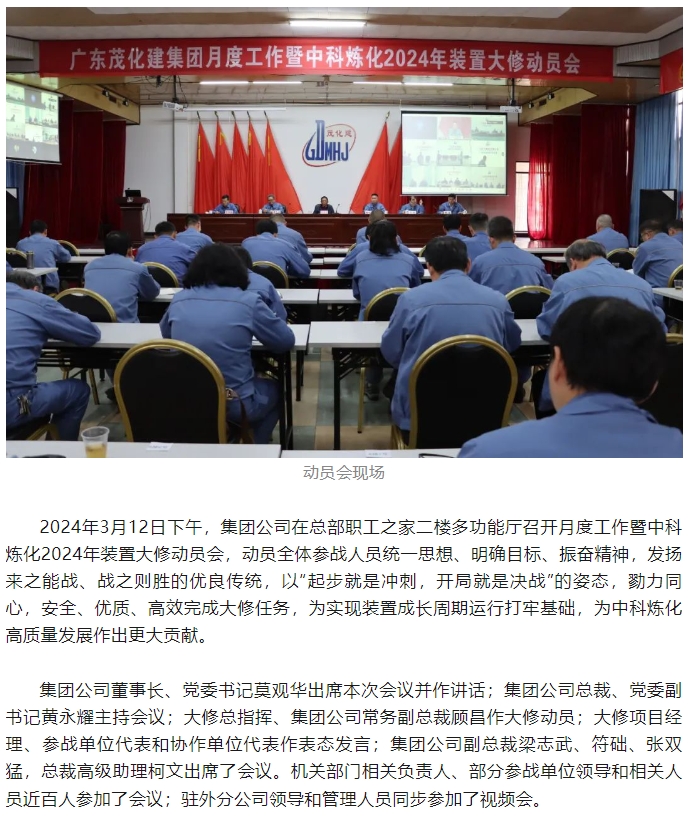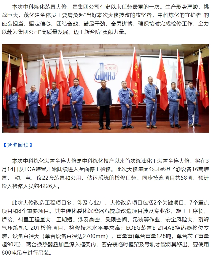 勠力同心擂響戰(zhàn)鼓 千軍萬(wàn)馬出征大修——集團(tuán)公司2024年中科煉化裝置大修動(dòng)
