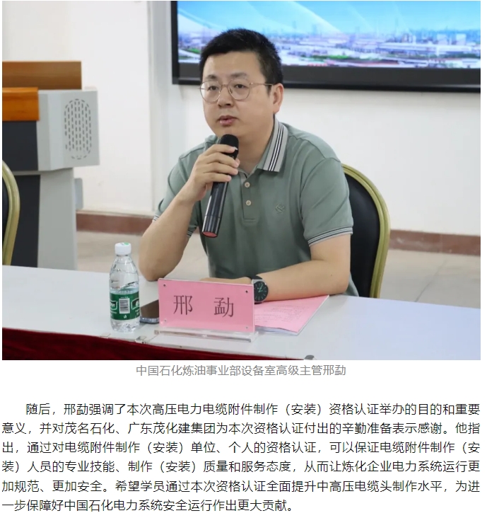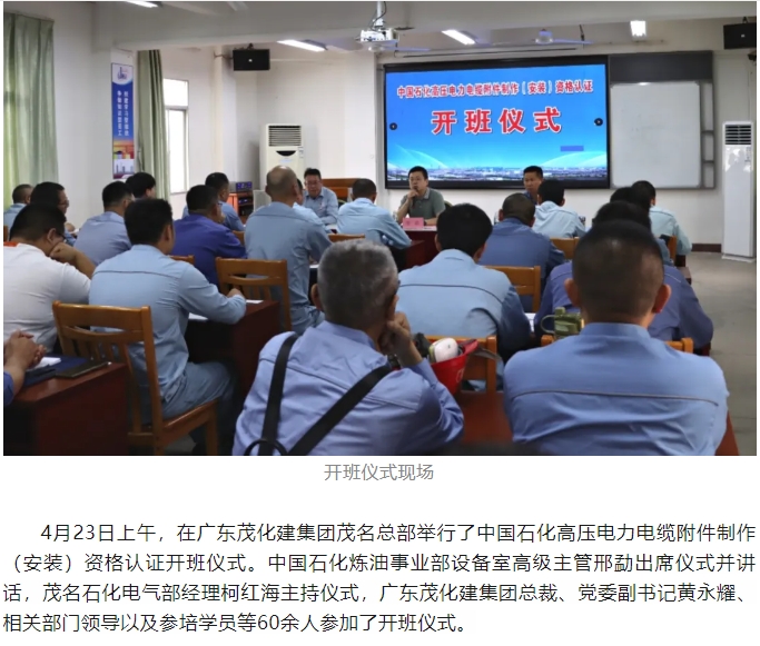 首次中國石化煉化板塊高壓電力電纜附件制作(安裝)資格認(rèn)證在茂名順利舉行