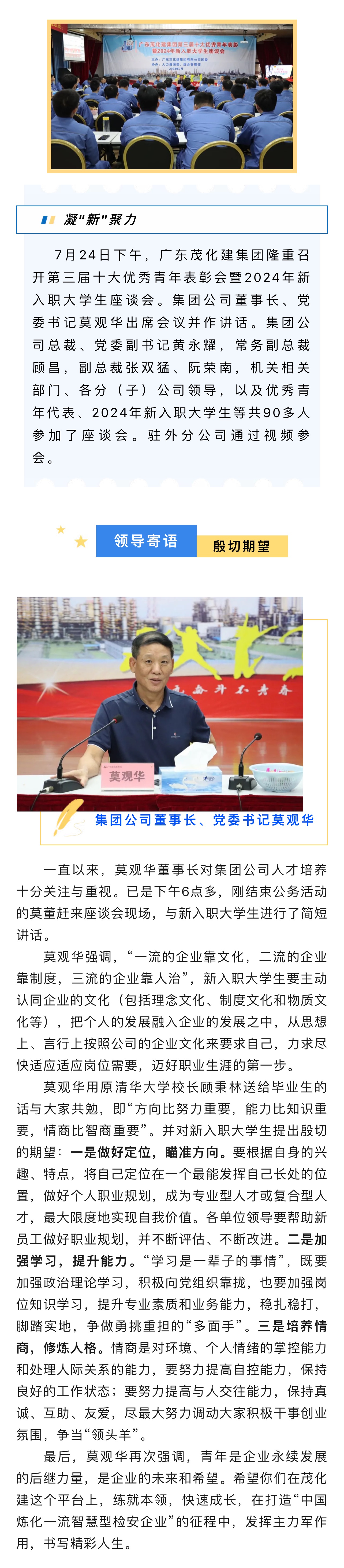 集團公司召開第三屆十大優(yōu)秀青年表彰會暨2024年新入職大學生座談會