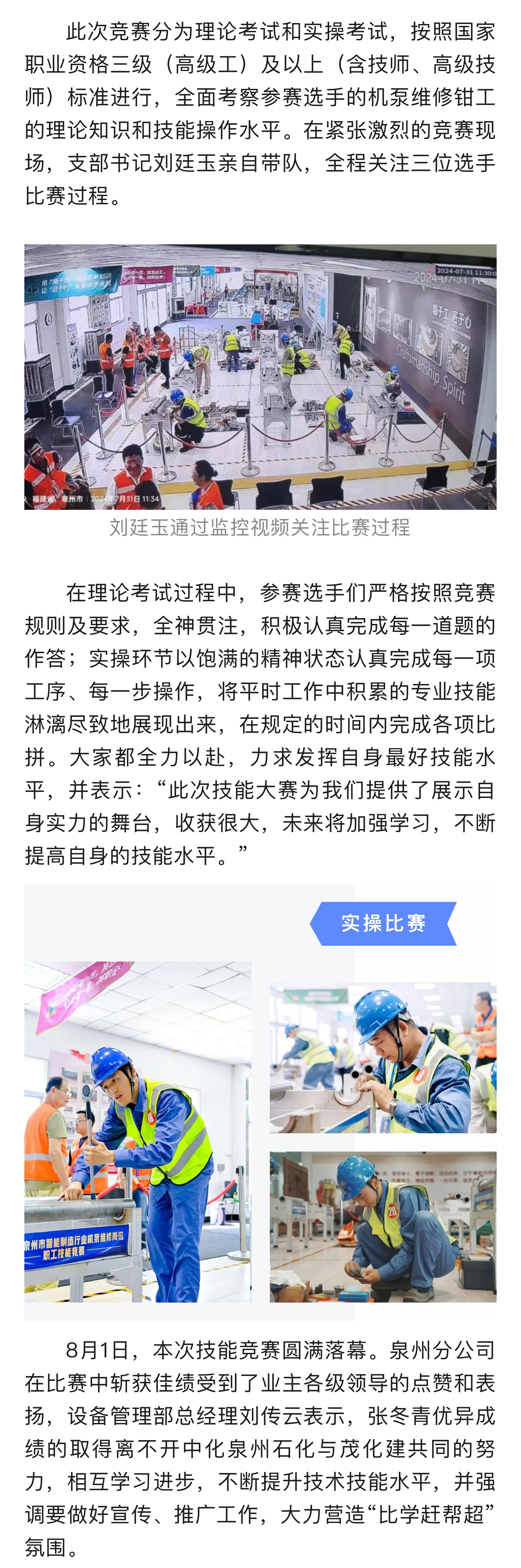 泉州分公司在泉州市維修機泵技能競賽創(chuàng)佳績