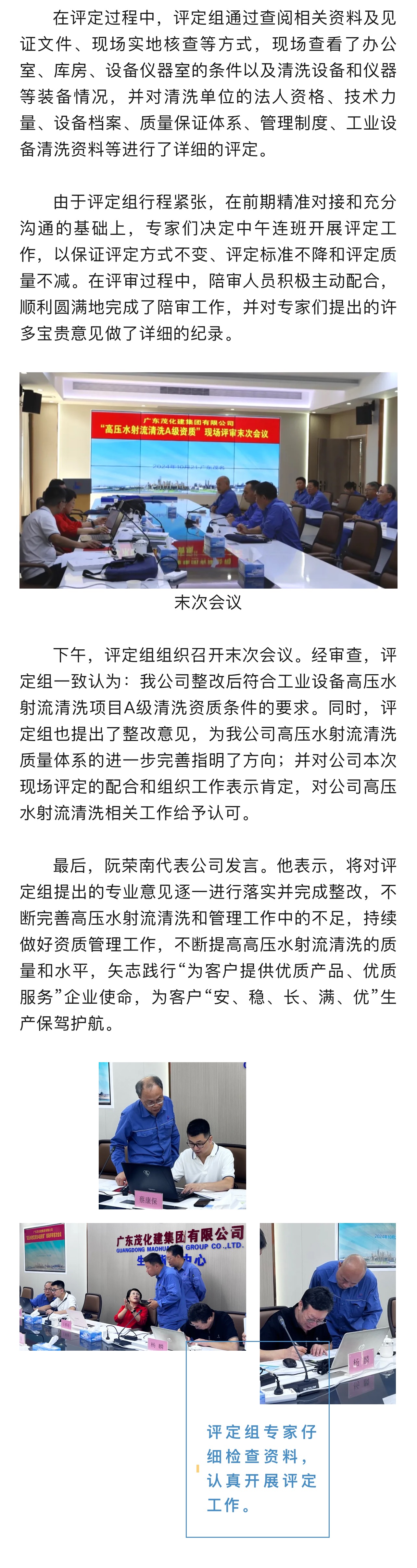 集團公司順利完成工業(yè)設備高壓水射流清洗A級清洗資質(zhì)現(xiàn)場評定