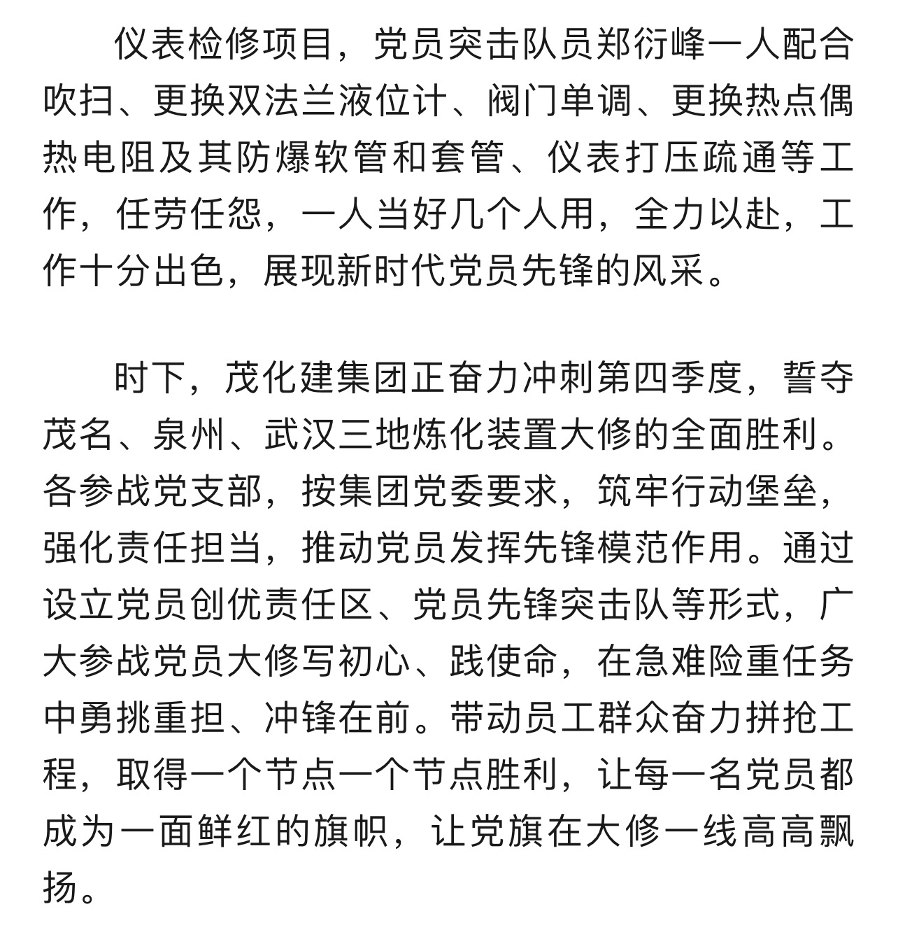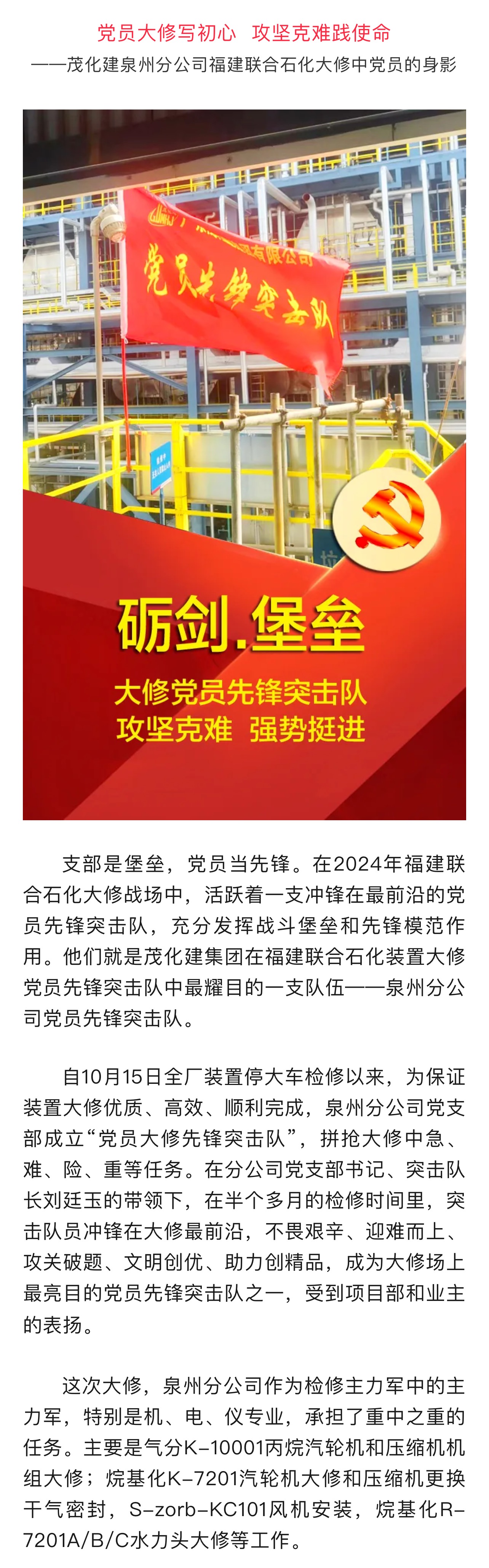 茂化建泉州分公司福建聯(lián)合石化大修中黨員的身影