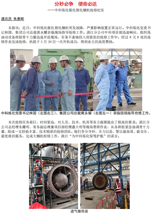 中科煉化催化裂化煙機搶修紀(jì)實