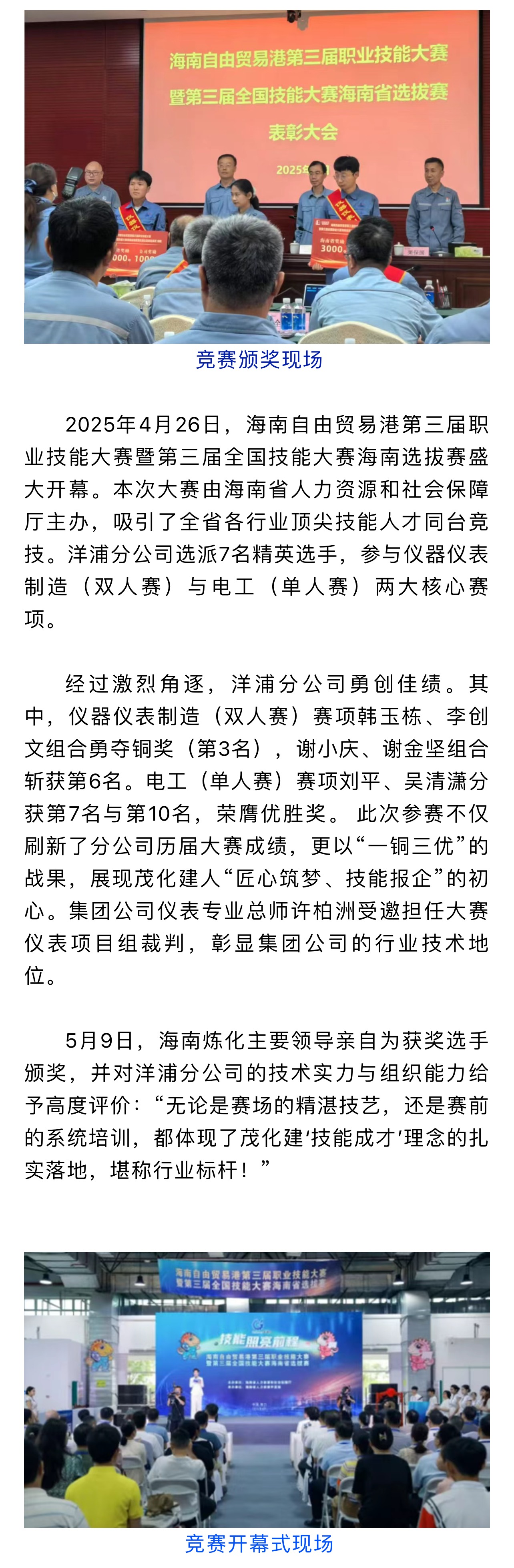 喜報(bào)|洋浦分公司海南自貿(mào)港職業(yè)技能大賽創(chuàng)佳績