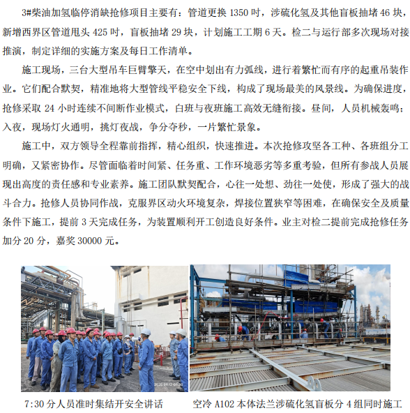 記3#柴油加氫裝置臨停消缺搶修