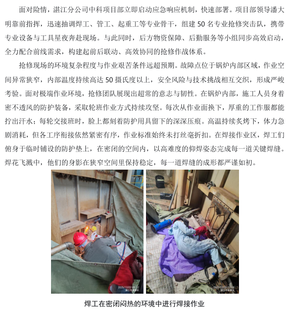 湛江分公司中科項目部余熱鍋爐搶修